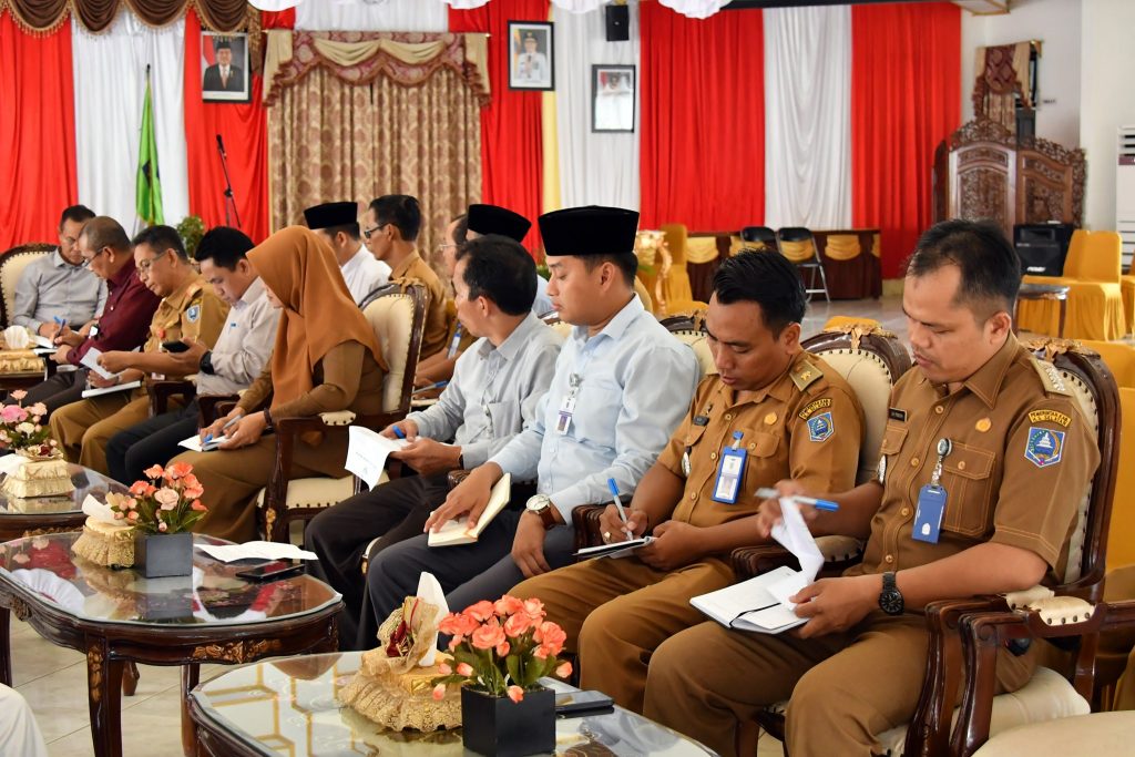 Hadir juga dalam rapat tersebut Sekretaris Daerah Kab. HSS Drs. H. Muhammad Noor, M.AP, para kepala dinas, camat dan para pejabat lingkup pemkab HSS.
