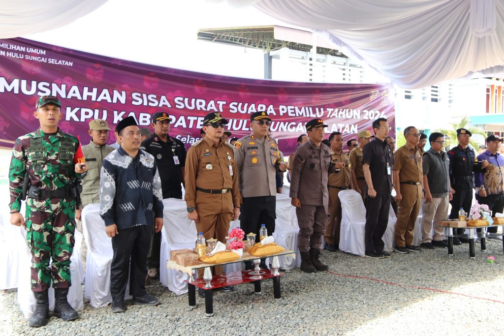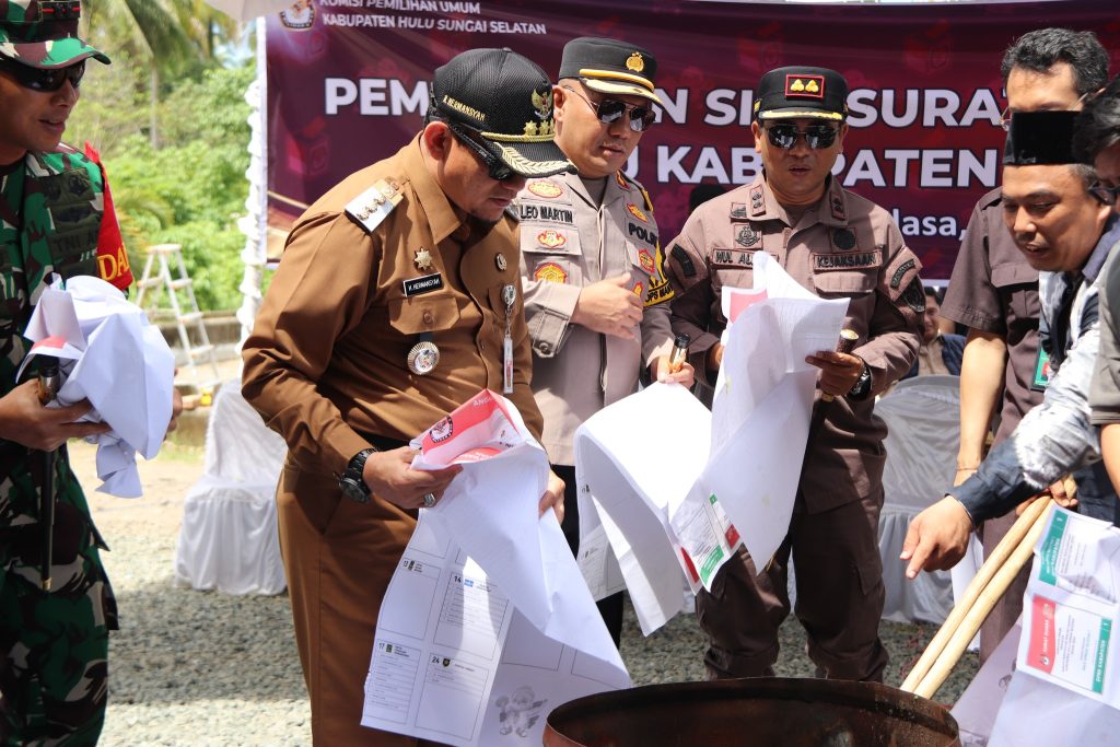 Pemusnahan Sisa Surat Suara Pemilu Tahun 2024 ini dilakukan langsung oleh Pj. Bupati HSS Drs. H. Hermansyah, MM bersama Forkopimda HSS, Sekda Kab. HSS, Ketua KPU, serta Ketua Bawaslu.