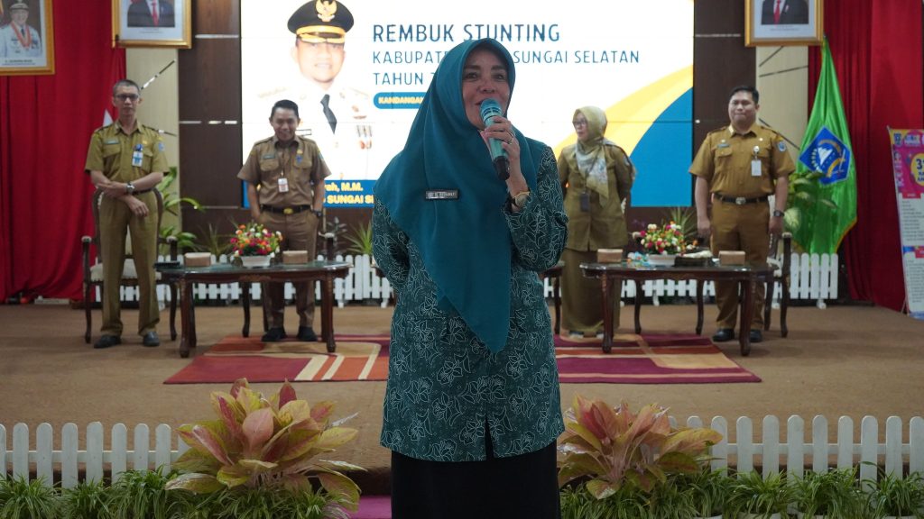 Penjabat (Pj) Ketua Tim Penggerak Pemberdayaan Kesejahteraan Keluarga (TP PKK) Kabupaten Hulu Sungai Selatan (HSS) Hj. Rusnawati Hermansyah, SE turut memberikan kontribusi unggul sebagai narasumber dalam acara Rembuk Stunting Tahun 2023 di Pendopo Bupati HSS, Senin (11/12).