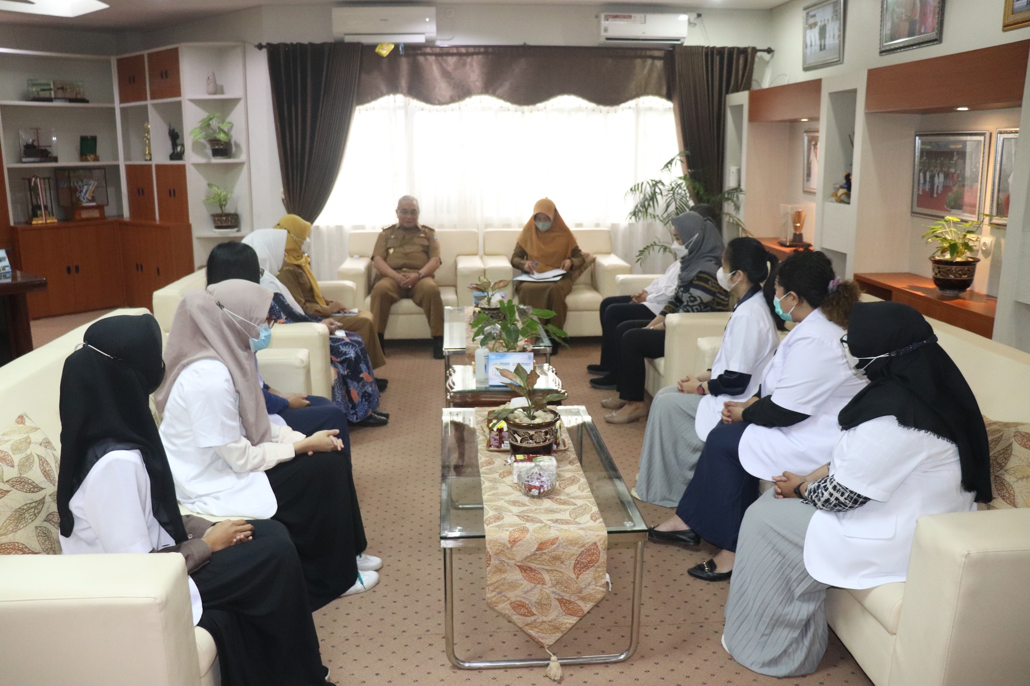 Mengawali aktifitasnya pagi ini, Bupati Hulu Sungai Selatan (HSS) Drs.H. Achmad Fikry, M.AP di ruang kerja menerima jajaran dinas kesehatan. Rombongan yang dibawa oleh Kadis Kesehatan dr. Hj. Siti Zainab ini terdiri dari 2 orang dokter spesialis anak dan 6 orang dokter baru yang sedang mengikuti Program Internship Dokter Indonesia (PIDI). Kedatangan Kadis Kesehatan ini juga didampingi oleh Direktur RS. H. Hasan Basri (RSHHB), dr. Hj. Rasyidah, M.Kes dan Direktur RS. Daha Sejahtera (RSDS), dr. Musliana. (Selasa,07/03).