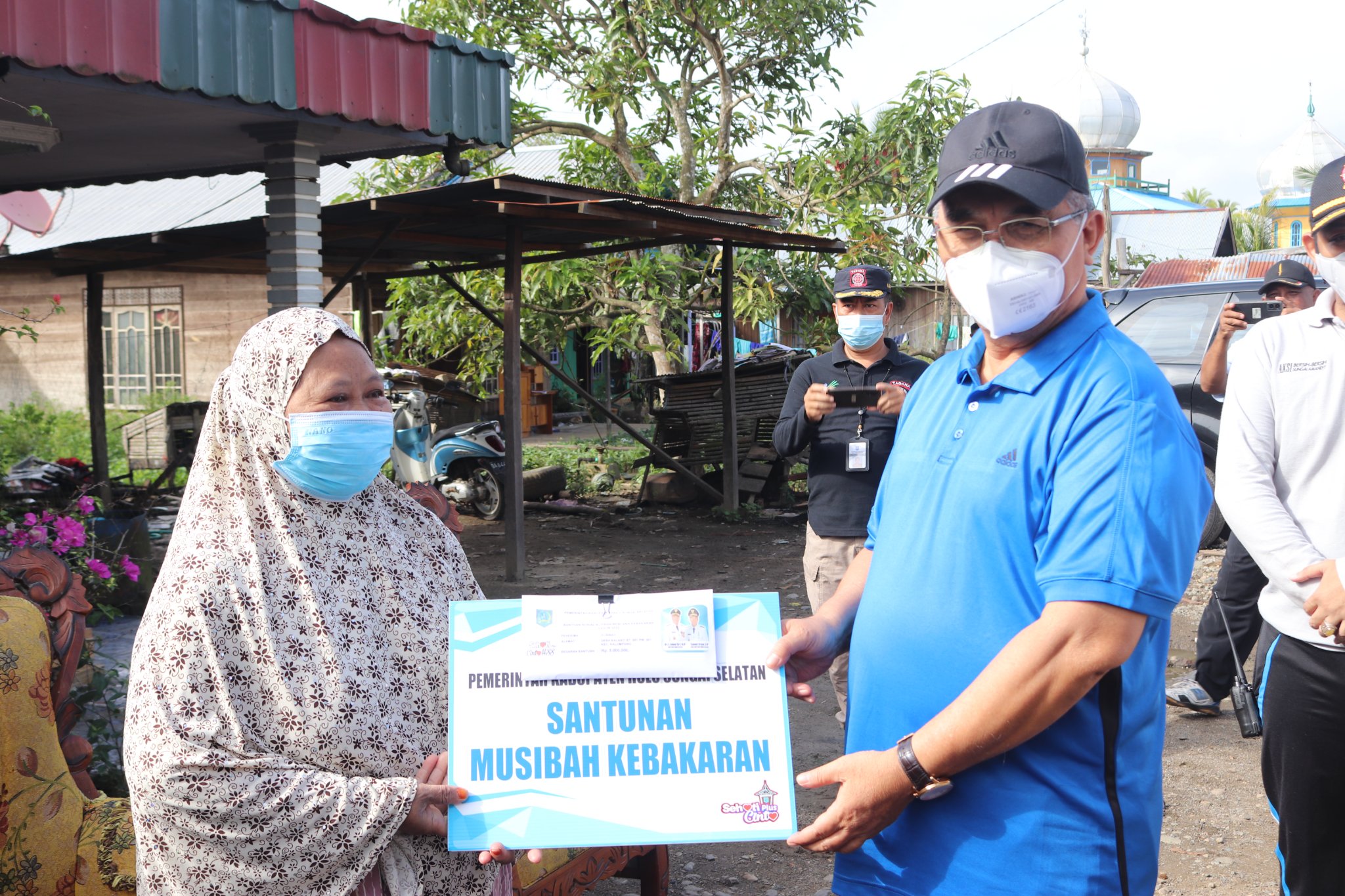 SAMBANGI KORBAN KEBAKARAN, BUPATI HSS BERIKAN BANTUAN