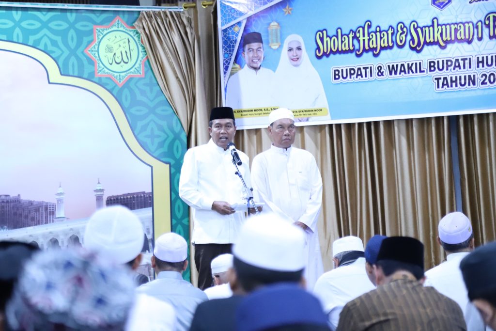 Dalam rangka memperingati satu tahun kepemimpinan, Bupati Hulu Sungai Selatan (HSS) H. Syafrudin Noor, SE., S.Sos bersama Wakil Bupati HSS H. Suriani, S.Sos., M.AP menghadiri kegiatan Sholat Hajat dan Doa Bersama yang dilaksanakan di Pendopo Bupati Hulu Sungai Selatan, Rabu (18/02).
