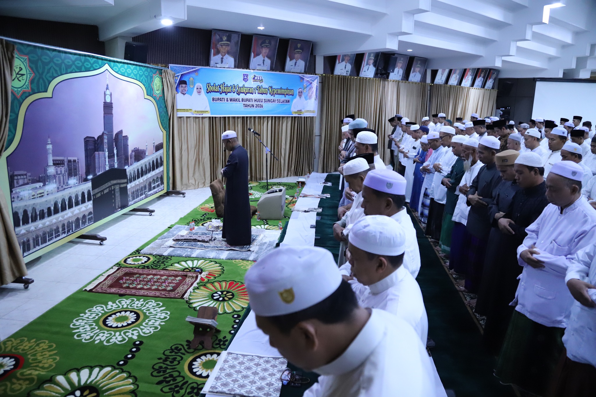 Dalam rangka memperingati satu tahun kepemimpinan, Bupati Hulu Sungai Selatan (HSS) H. Syafrudin Noor, SE., S.Sos bersama Wakil Bupati HSS H. Suriani, S.Sos., M.AP menghadiri kegiatan Sholat Hajat dan Doa Bersama yang dilaksanakan di Pendopo Bupati Hulu Sungai Selatan, Rabu (18/02).