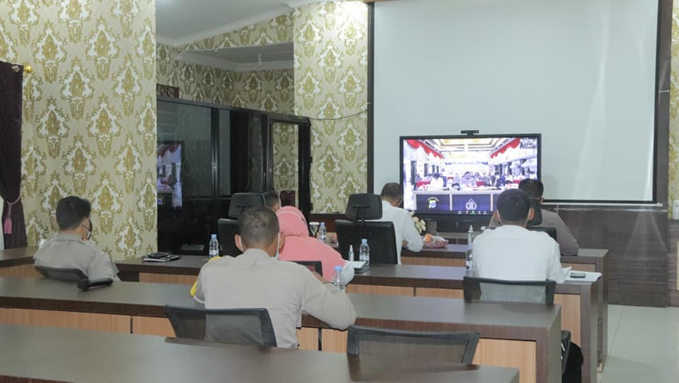 Bertempat di Aula Endhra Dharmalaksana, vicon tersebut turut diikuti Kapolres HSS Sugeng Priyanto, S.IK, MH dan Kepala BPBD Kesbangpol Kab. HSS Roni Rusnadi S.H serta undangan lainnya.