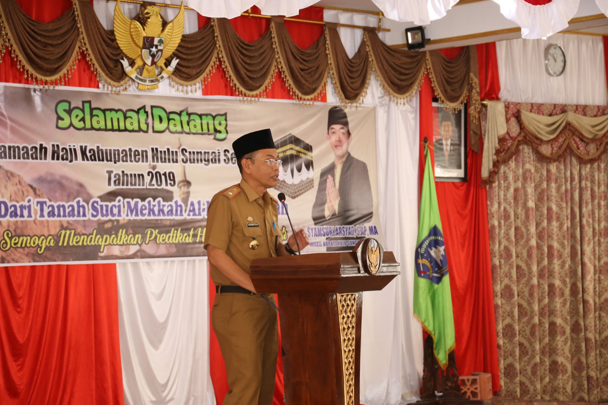 Kemudian Sekda HSS dalam sambutannya menyampaikan ucapan selamat datang dari tanah suci kepada para jemaah haji kabupaten hulu sungai selatan, yang pada hari ini telah kembali dengan selamat. Sekda HSS juga berharap agar nilai positif yang diperoleh dari pelaksanaan ibadah haji dapat diimplementasikan dalam kehidupan sehari hari, baik pada aktivitas beragama, bermasyarakat, berbangsa dan bernegara, serta berkontribusi bagi terwujudnya hulu sungai selatan yang sejahtera dunia dan akhirat. Selain itu sekda HSS juga berharap kepada para jemaah agar dapat menjaga kekompakan, kebersamaan, dan rasa senasib sepenanggungan dengan kawan-kawan selama berada di tanah suci.