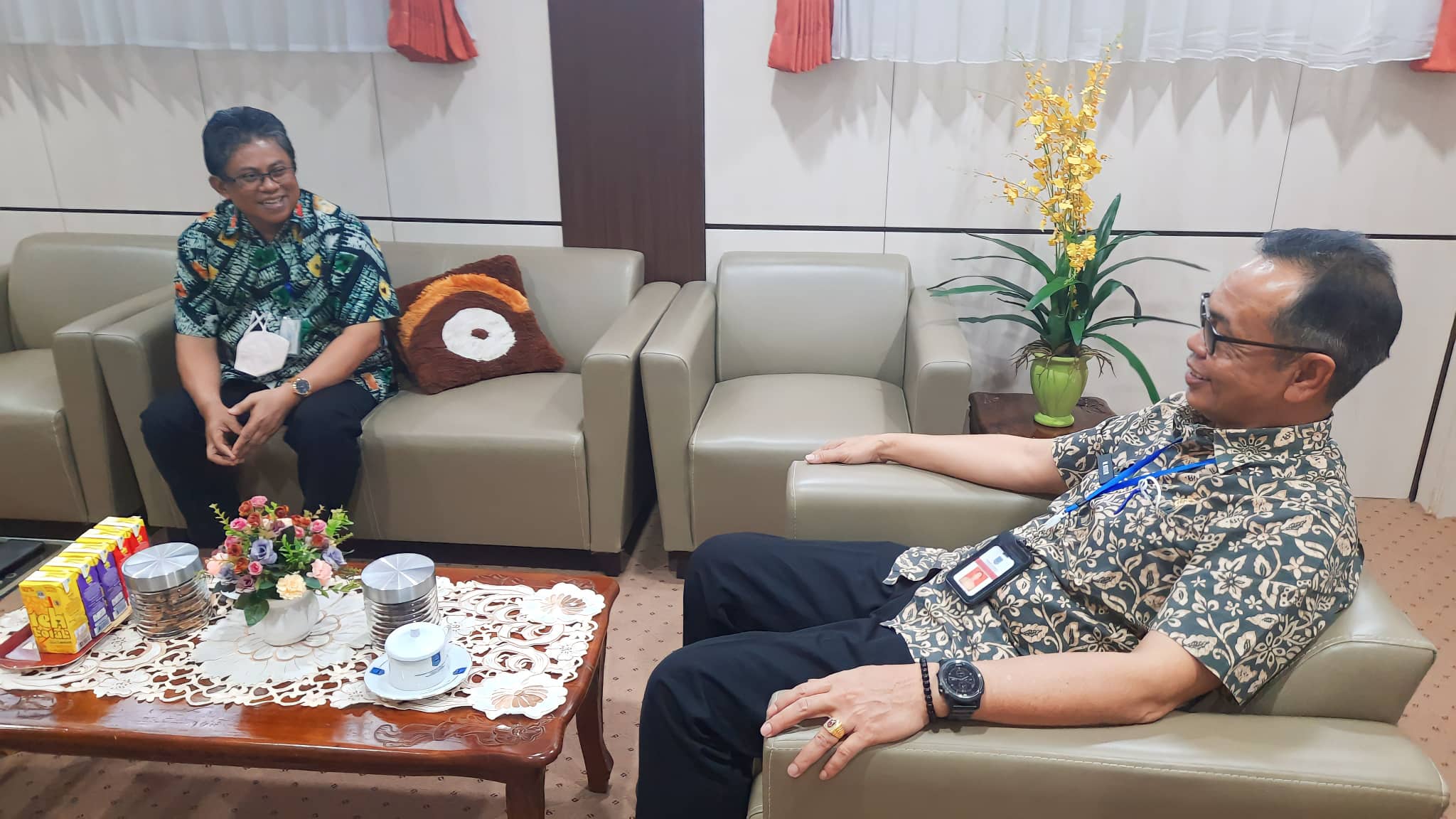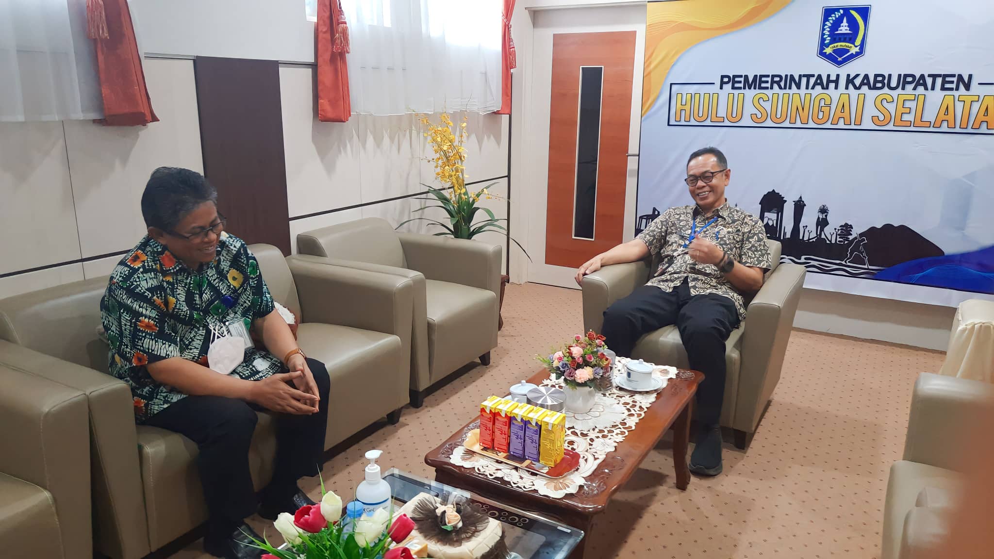 Sekretaris Daerah Kab. HSS Drs. H. Muhammad Noor M.AP terima kunjungan dari Kepala Bank Kalsel Cabang Kandangan yang baru M. Louthfi Rahmany, Kamis (03/11).