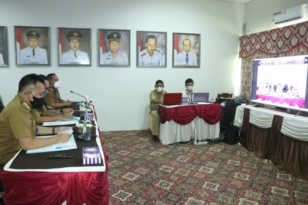 Sekretaris Daerah Kabupaten Hulu Sungai Selatan membuka Asistensi Penilaian Kepatuhan Standar Pelayanan Publik secara daring di Media Center Setda HSS