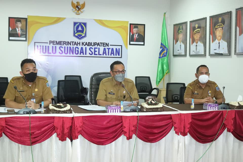 Sekretaris Daerah (Sekda) Kabupaten Hulu Sungai Selatan (Kab. HSS) Drs. H. Muhammad Noor, M.AP didampingi Asisten Administrasi Umum Drs. H. Iwan Friady, M.AP dan Kepala Bagian Organisasi Auliya Sofi Azmi, SSTP, M.Ec, Dev membuka Asistensi Penilaian Kepatuhan Standar Pelayanan Publik secara daring di Media Center Setda HSS. Selasa (15/03/2022)