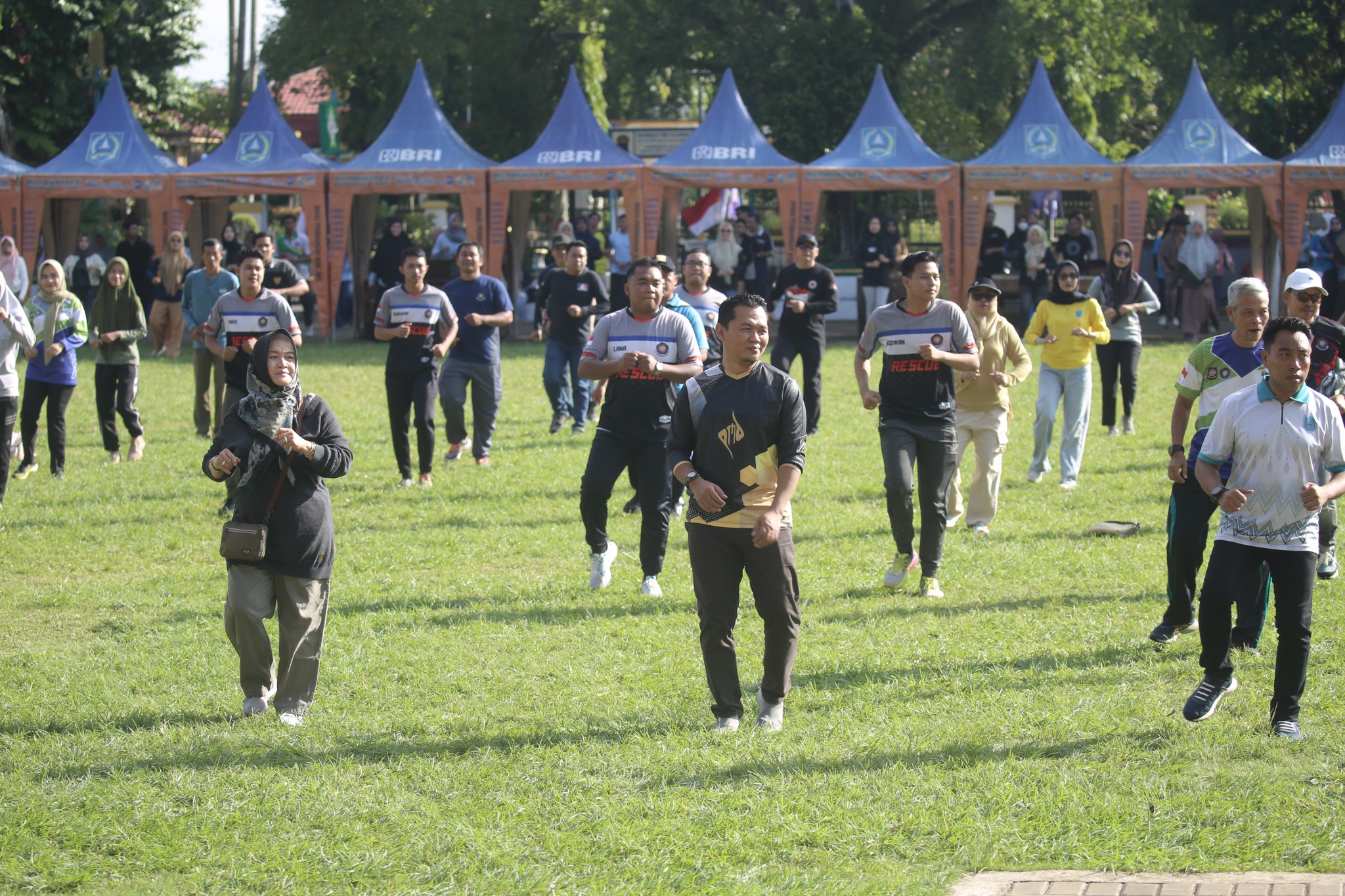 Lapangan Lambung Mangkurat di Kandangan pada pagi hari ini kembali dimeriahkan dengan pelaksanaan Senam Gabungan Bulanan, pada Jum’at (15/11). Kegiatan yang digelar Pemerintah Kabupaten Hulu Sungai Selatan (Kab. HSS) ini dihadiri oleh berbagai elemen masyarakat dan aparatur pemerintahan, yang turut hadir untuk menjaga kebugaran serta mempererat hubungan antar peserta.