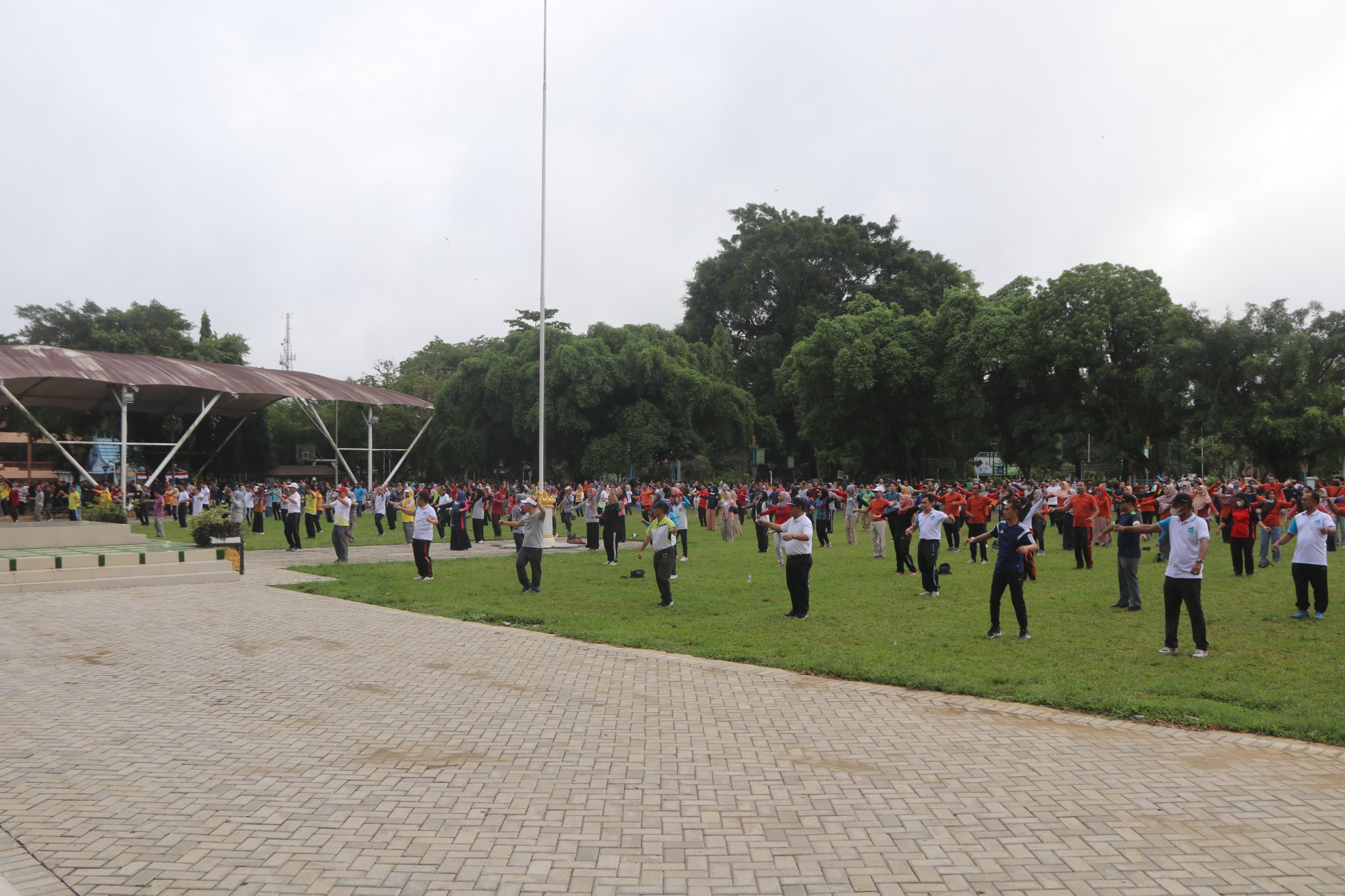 Senam gabungan rutin bulanan kembali digelar Pemerintah Kabupaten Hulu Sungai Selatan, dimana sebelumnya sempat terhenti karena pandemi covid-19.