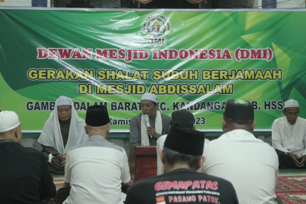 Dalam upaya memakmurkan masjid, Dewan Masjid Indonesia (DMI) Kabupaten Hulu Sungai Selatan (Kab. HSS) menggiatkan “Shalat Subuh Berkah”, salah satunya hari ini di Masjid Abdissalam Desa Gambah Dalam Barat, 19 Oktober 2023.
