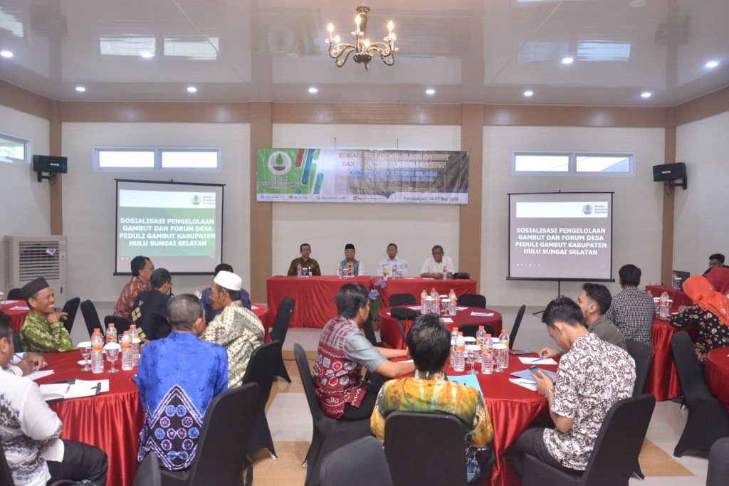Bertempat di aula Hotel Qianna’inn Kandangan, Bupati Hulu Sungai Selatan (HSS) Drs. H. Achmad Fikry, M.AP membuka secara resmi kegiatan Sosialisai Pengelolaan Gambut dan Forum Desa Peduli Gambut Kabupaten Hulu Sungai Selatan (HSS), Provinsi Kalsel yang diadakan oleh Badan Restorasi Gambut (BRG) dan Dnas Lingkungan Hidup Provinsi Kalsel, dengan tema “ Pulihkan Gambut Pulihkan Kemanusiaan”.