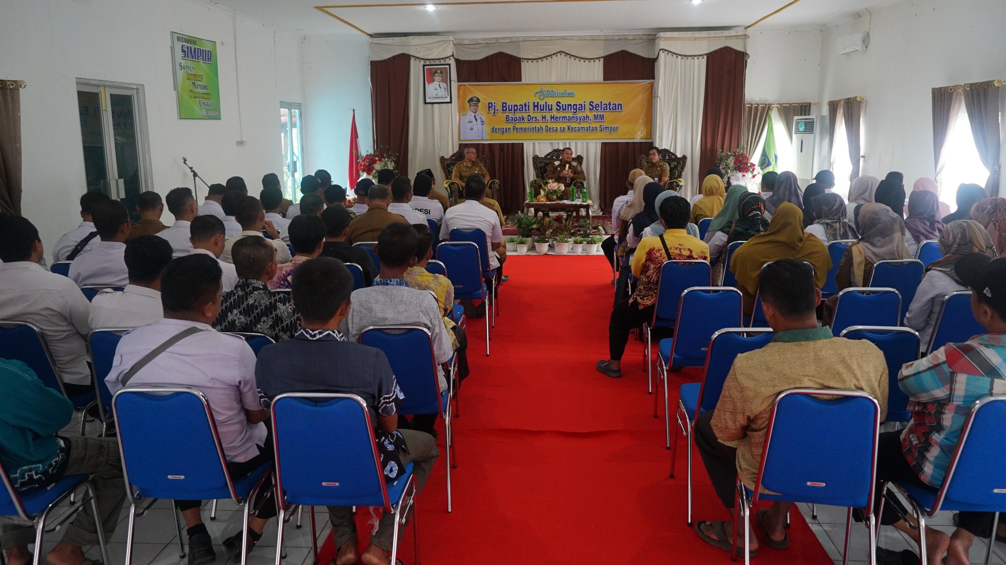Penjabat Bupati Hulu Sungai Selatan (HSS) Drs. H. Hermansyah, MM memang pandai membuat para Kades dan Aparat Desa lebih rileks pada saat bertemu dalam gelar silaturrahmi di Aula Kecamatan Simpur. Hal ini bisa dilihat dari berbagai ungkapan yang terlontar dari para kades dan aparat desa ini pada saat sesi dialog dilaksanakan. Bermacam-macam usulan dan permohonan mereka utarakan dihadapan Pj. Bupati HSS dan ditanggapi dengan seksama namun dalam suasana santai tanpa terkesan canggung. Sehingga suasana ini terkadang diwarnai gelak tawa semua yang hadir. Itulah suasana siltaurrahmi keliling Pj. Bupati menemui para Kades dan Aparat Desa se-HSS, yang kali ini tiba giliran Kecamatan Simpur bertempat di Aula Kecamatan. (Selasa, 24/10).