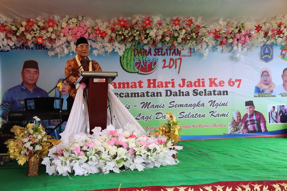 Sementara itu Bupati Hulu Sungai Selatan Drs. H. Achmad Fikry, M.AP dalam sambutannya menyampaikan bahwa Kab. Hulu Sungai Selatan itu miliknya semua kecamatan, untuk itu peringatan hari jadi tidak hanya dilaksanakan di kabupaten tetapi juga dilaksanakan di tiap-tiap kecamatan di Kab. HSS. “maknanya adalah hari jadi milik warga Hulu Sungai Selatan yang tidak sempat hadir kemarin di Kandangan sekarang kita rayakan bersama-sama di Kecamatan Daha Selatan” kata Bupati.