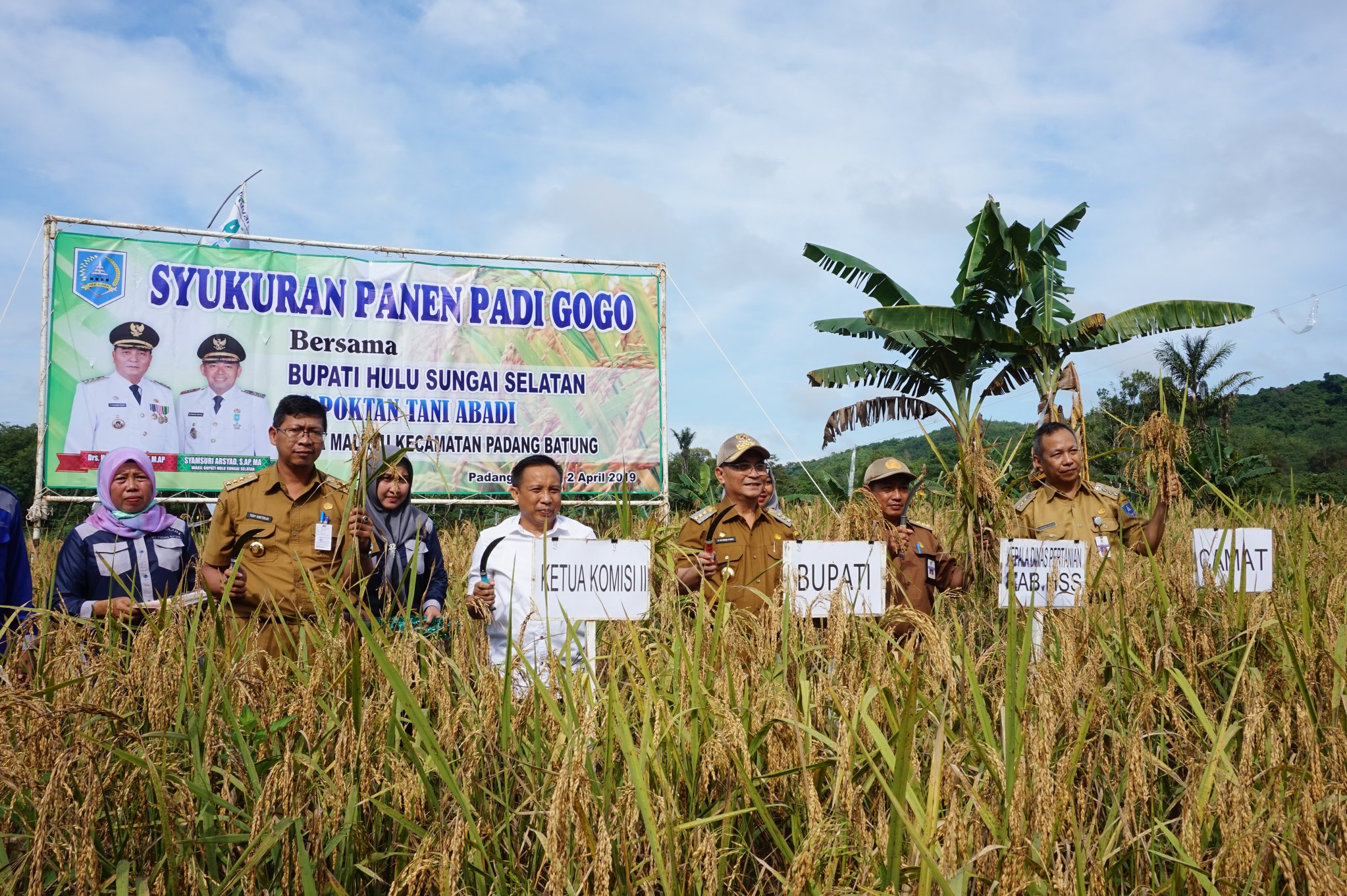 Suasana gembira dan meriah mewarnai kegiatan Syukuran Panen Perdana Padi Gogo masyarakat Dusun Loktampang Desa Malutu , Kecamatan Padang Batung. Hari ini (Selasa, 02/05/2019) Bupati Hulu Sungai Selatan (HSS), Drs. H.Achmad Fikry, M.AP hadir langsung menghadiri kegiatan ini. Bersama dengan Ketua Komisi II DPRD HSS serta Camat Padang Batung, H. Achmad Fikry melakukan Panen Perdana Padi Gogo dilahan bekas galian tambang yang dimanfaatkan untuk pertanian ini. Luasan lahan eks galian tambang yang ada di Desa Malutu Kec. Padang Batung, yang sudah dimanfaatkan saat ini sekitar 3 ha dari total 5 ha yang tersedia.