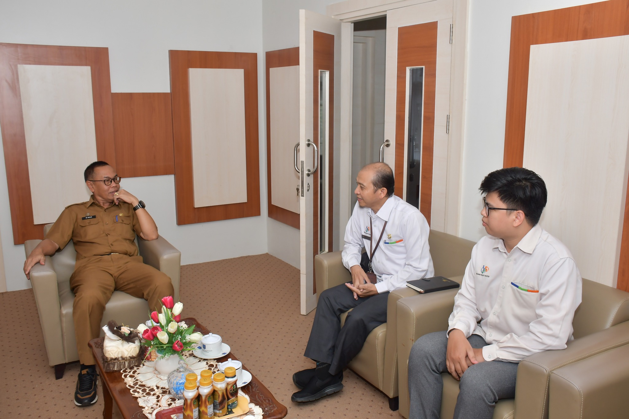Sekretaris Daerah (Sekda) Kabupaten Hulu Sungai Selatan (HSS) Drs. H. Muhammad Noor, M.AP, menerima kunjungan Kepala Badan Pusat Statistik Kabupaten HSS Agung Setiawan Prasetya, S.ST, M.Si, bertempat di ruang kerja Sekda Kabupaten HSS. Selasa (13/02/2024).
