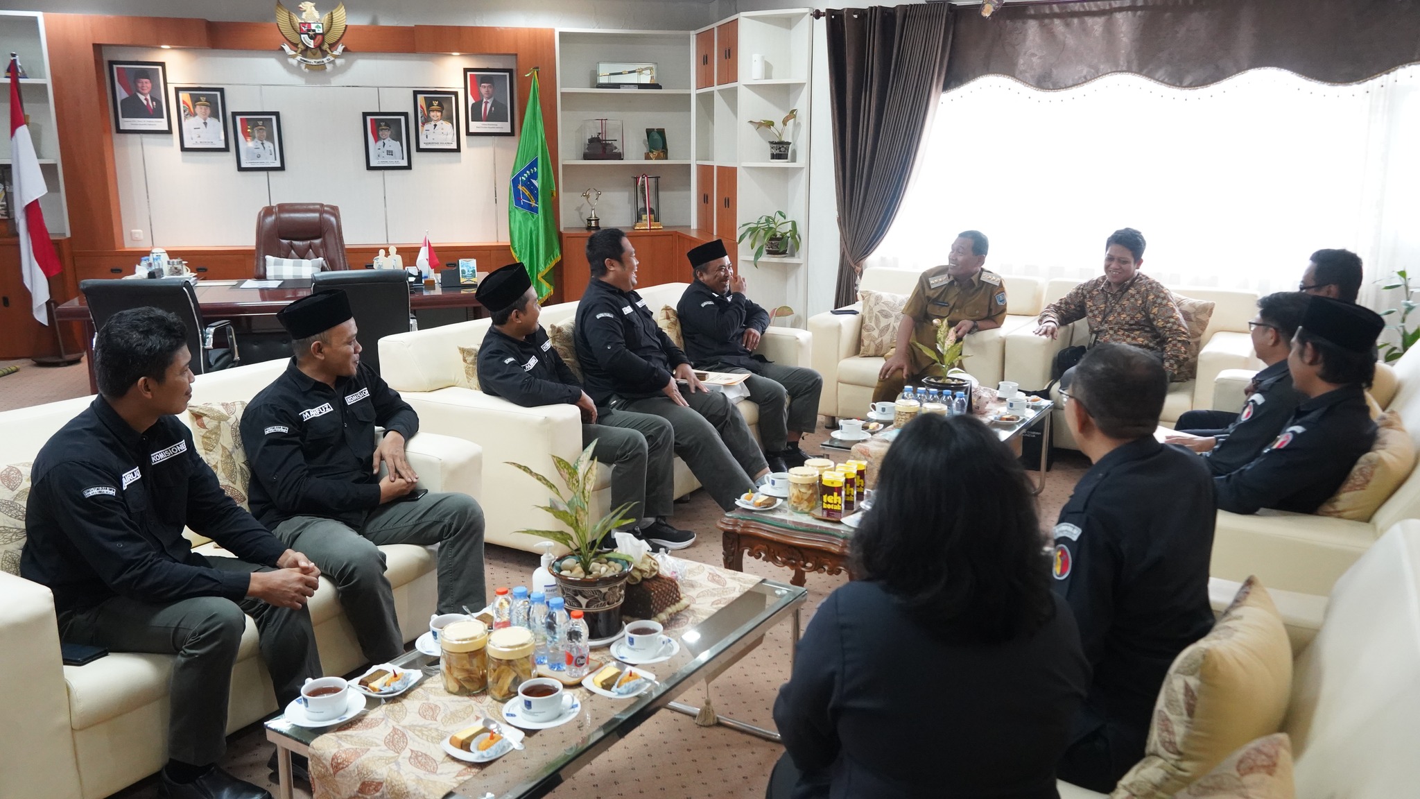 Bupati Hulu Sungai Selatan (HSS), H. Syafrudin Noor, SE, S.Sos, menerima kunjungan Ketua Badan Pengawas Pemilu (Bawaslu) Kabupaten HSS, Hasnan Fauzan, M.Pd.I, beserta jajaran. Bertempat di Ruang Kerja Bupati. Senin (28/04/2025).