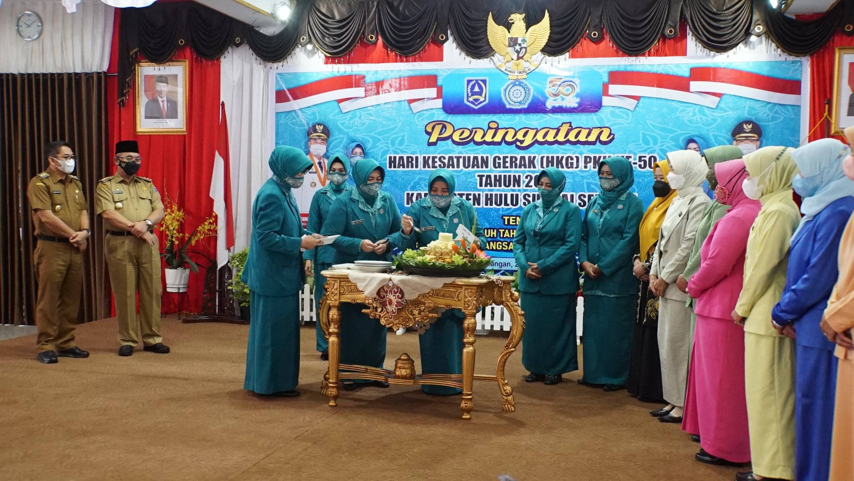 Dalam memperingati Hari Kesatuan Gerak (HKG) Tim Penggerak Pemberdayaan Kesejahteraan Keluarga (TP. PKK) Ke – 50 Tahun 2022. Tim penggerak PKK Kabupaten Hulu Sungai Selatan (HSS) menggelar acara Peringatan yang berlangsung di Pendopo Bupati pada Senin (21/03).
