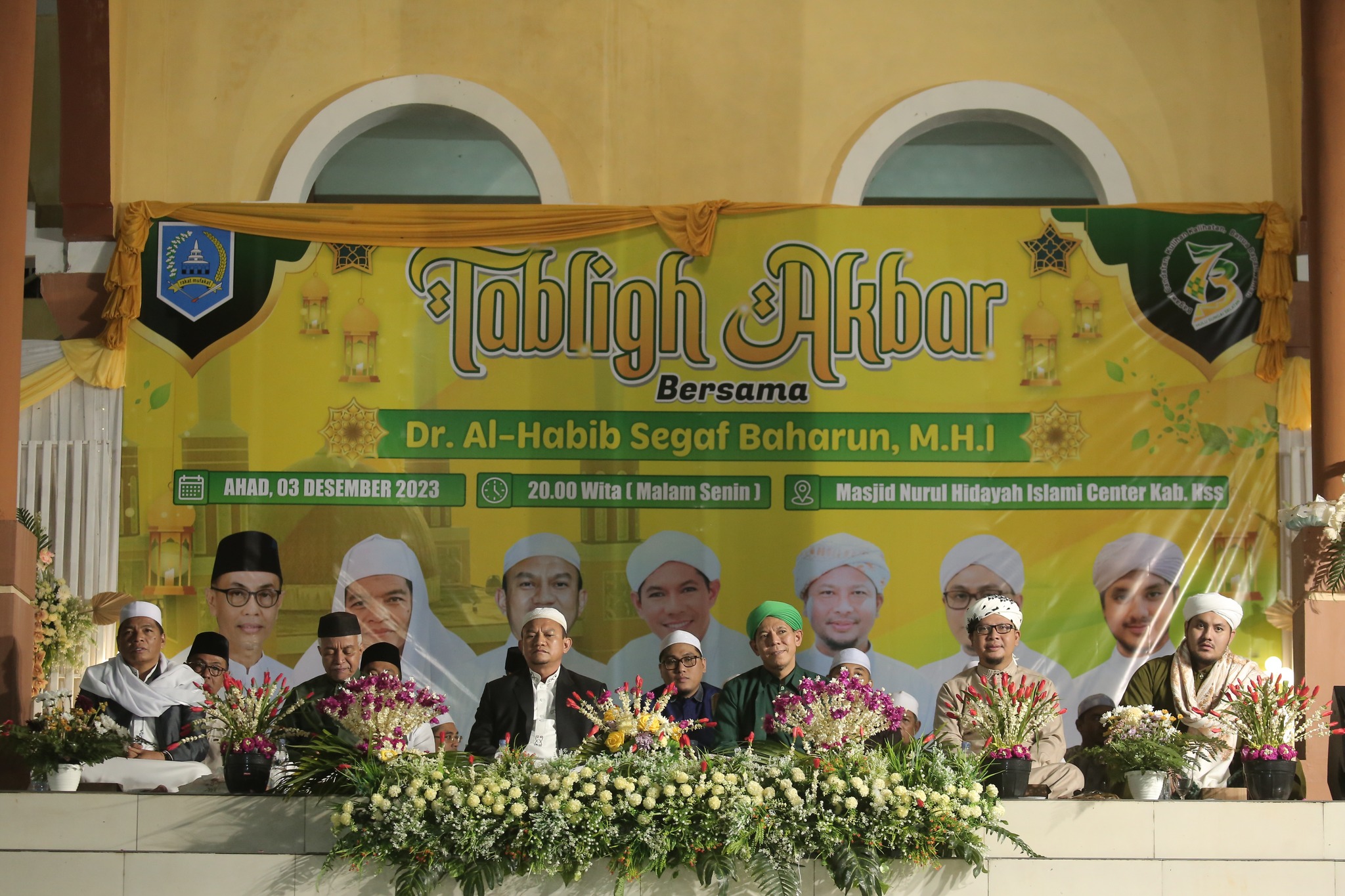 Kawasan Islamic Center KH. Darham Hidayat dipenuhi ratusan masyarakat Kabupaten Hulu Sungai Selatan (HSS) untuk mengikuti Tabligh Akbar bersama Dr. Al-Habib Segaf Baharun, M.H.I dan dan Al-Habib Alawi bin Segaf Baharun, Minggu (03/12) malam bertepatan dengan 20 Jumadil Awal 1445 H.
