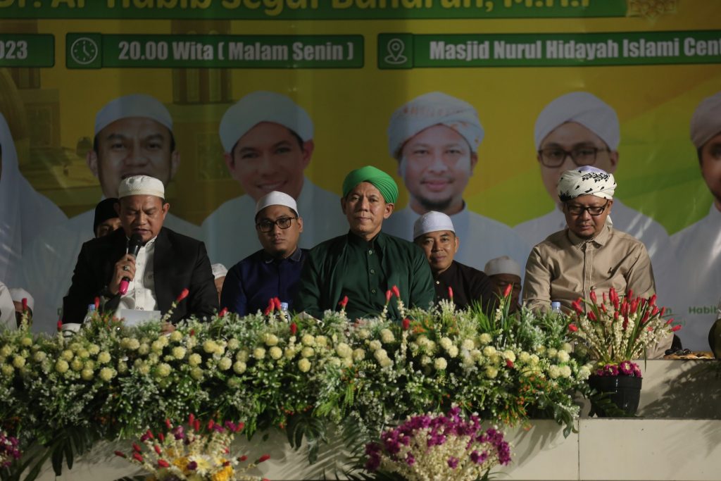Sementara itu, Dr. Al-Habib Segaf Baharun, M.H.I dalam tausyiahnya menyampaikan mengenai “Sholawat Busyro dan Bagaimana Melakukan Sholawat Busyro” dan beliau juga mengajak masyarakat yang berhadir untuk bersama-sama melantunkan sholawat busyro.