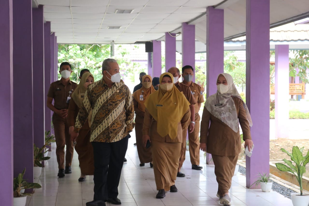 Bupati Hulu Sungai Selatan (HSS) Drs. H. Achmad Fikry, M.AP didampingi Direktur RSUD Brigjend H. Hasan Basry Kandangan dr. Rasyidah serta Dokter Radiologi dr. Sigit Riatno meninjau pelayanan dan alat CT Scan yang baru dibuka Rumah Sakit Umum Daerah (RSUD) Brigjend H. Hasan Basry Kandangan, Senin (27/06/2022).
