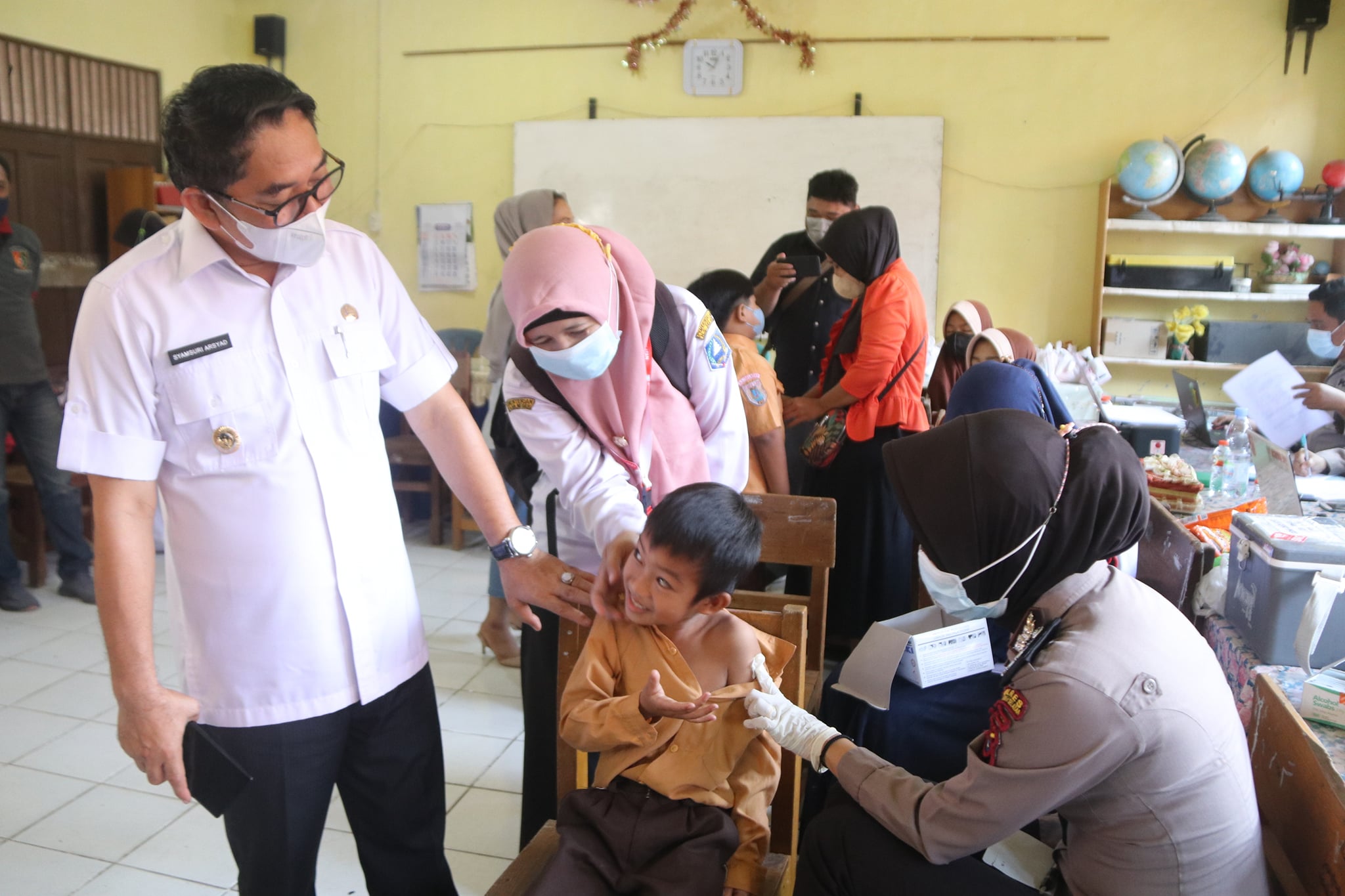 Rabu(12/01/2021) Wakil Bupati Hulu Sungai Selatan (Wabup HSS) Syamsuri Arsyad, S. AP, MA meninjau langsung pelaksanaan vaksinasi bagi anak usia 6-11 tahun di SDN Kandangan Kota 2.