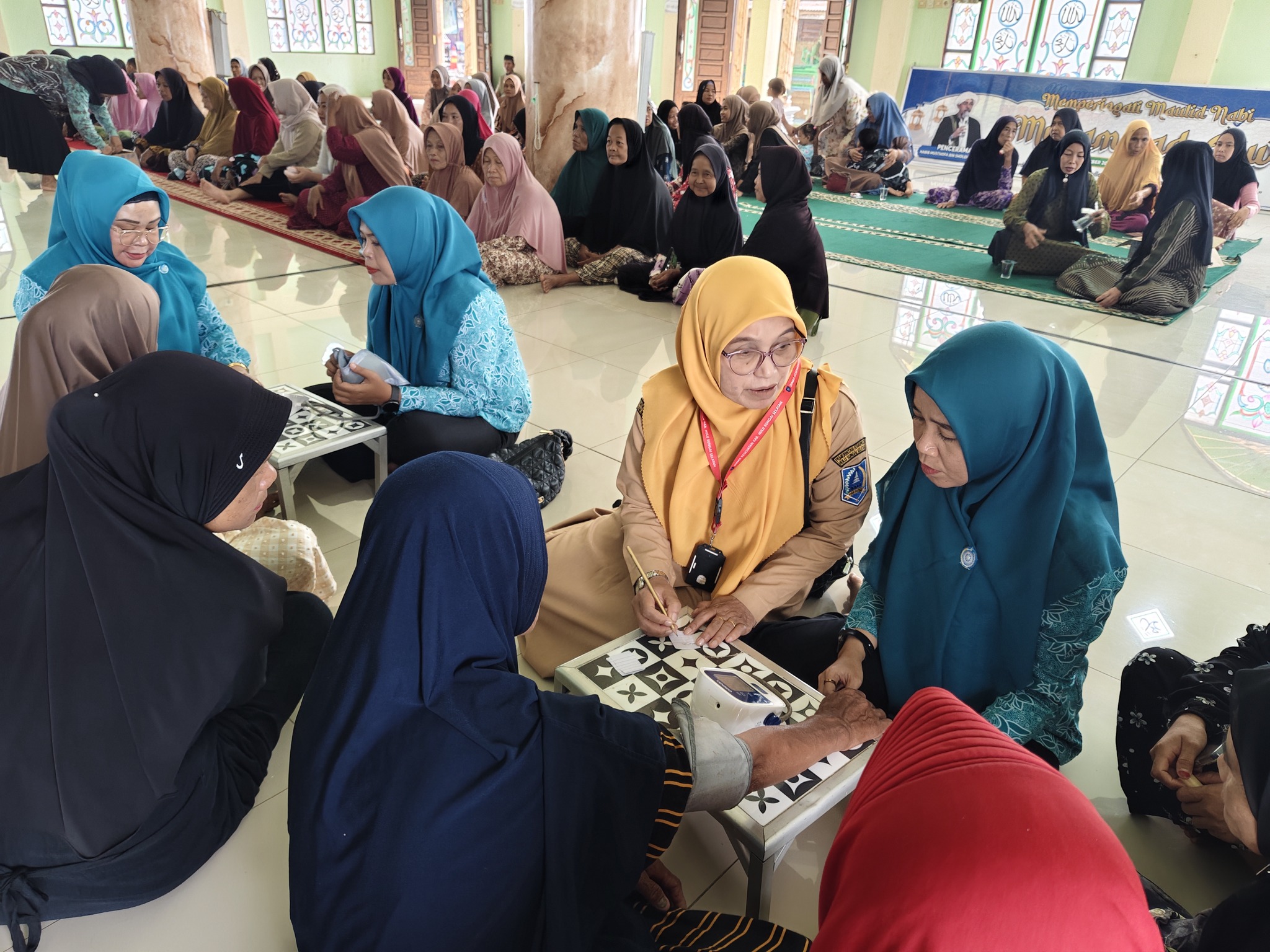 Dalam kunjungan tersebut, Ketua TP-PKK Kabupaten HSS hadir bersama jajaran pengurus TP-PKK Kabupaten untuk meninjau langsung kegiatan pemeriksaan kesehatan rutin bulanan bagi lansia dan kelompok rentan yang dipusatkan di Masjid Al Ma’ruf, Desa Bangkau. Kegiatan ini diikuti sekitar 125 warga yang memeriksakan kesehatannya.