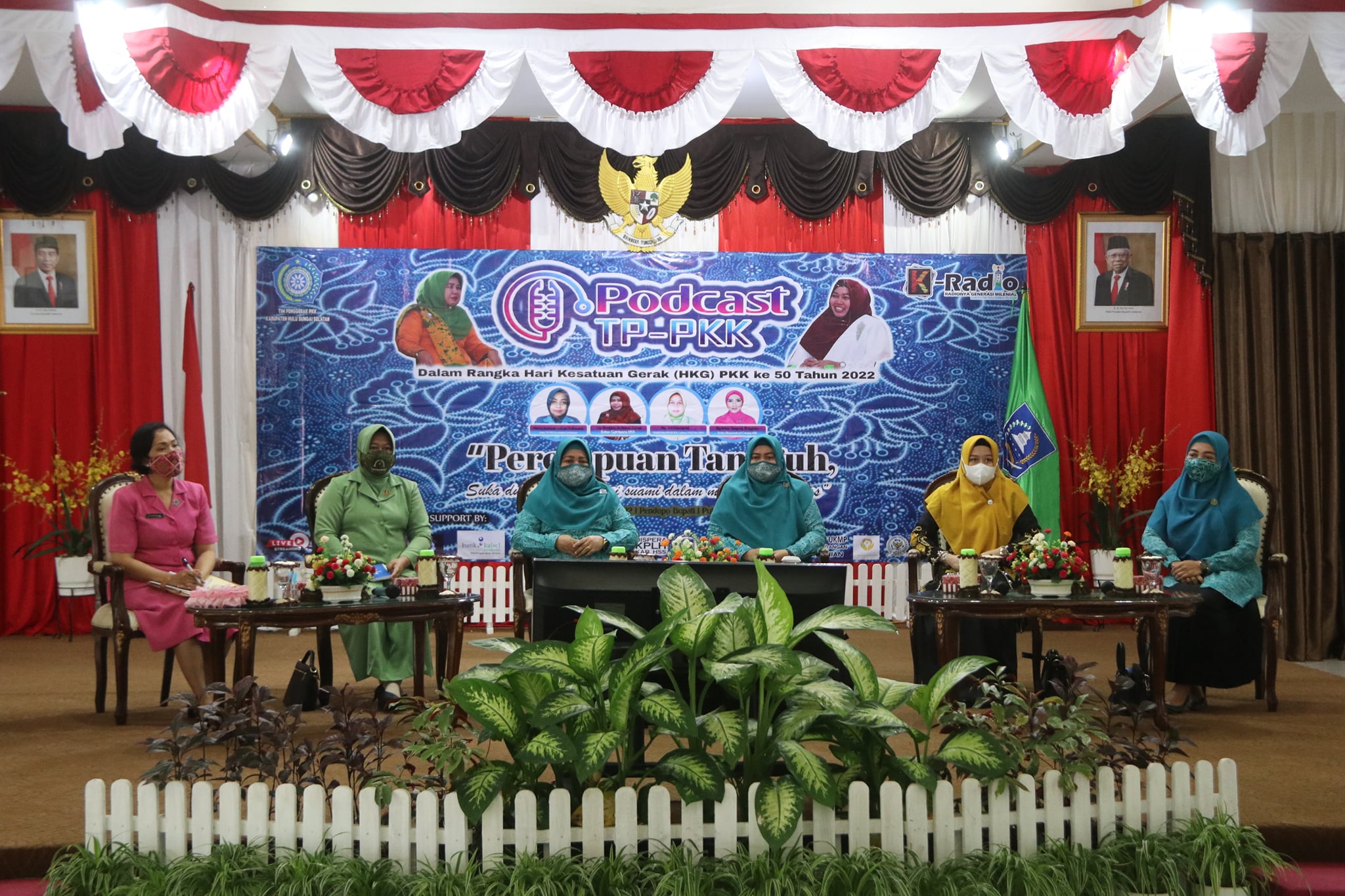 Potcast yang dilaksanakan TP PKK Kab. HSS ini sendiri digelar dalam rangka peringatan Hari Kesatuan Gerak (HKG) ke 50 Tahun 2022.Dalam sambutannya, Ketua TP PKK Kab. HSS Hj. Isnaniah Achmad Fikry mengatakan bahwa dibalik kesuksesan seorang suami terdapat dukungan penting istrinya, karena peran istri dalam memberikan kontribusi bagi perkembangan dan kemajuan karier suami sangatlah penting.”kita harap, melalui kegiatan podcast pada hari ini dapat menjadi media berbagi kisah kesuksesan para istri dalam mendampingi suami, sekaligus juga dapat menjadi inspirasi bagi yang lainnya”, ucapnya.Kemudian Ketua TP PKK Kab. HSS Hj. Isnaniah Achmad Fikry juga berpesan karena dalam pelaksanaan tugas sebagai seorang istri akan banyak terdapat permasalahan dan tantangan yang dihadapi, sehingga dengan bekal pengetahuan dan pengalaman para narasumber, tentunya akan menjadi modal berharga untuk mengatasinya.”Semoga allah subhanahu wata’ala senantiasa memberikan kemudahan bagi kita semua dalam rangka turut mendukung terlaksananya pembangunan di Kabupaten Hulu Sungai Selatan, khususnya dalam rangka mewujudkan para istri yang tangguh sebagaimana harapan suami”, tuturnya.Kegiatan yang di diikuti oleh organisasi Wanita hss dan sebagai narasumber pada kegiatan ini ketua TP PKK Kecamatan kandangan Yunita Indriani lotvhie rahmani, Ketua GATRIWARA hss Lia Noviana Ahmad Fahmi, Wakil Ketua persit NCK cabang XXVI Dim 1003 Ny. Tri Handarini, Wakil Ketua Bhayangkari HSS Ny. Ida Rissan