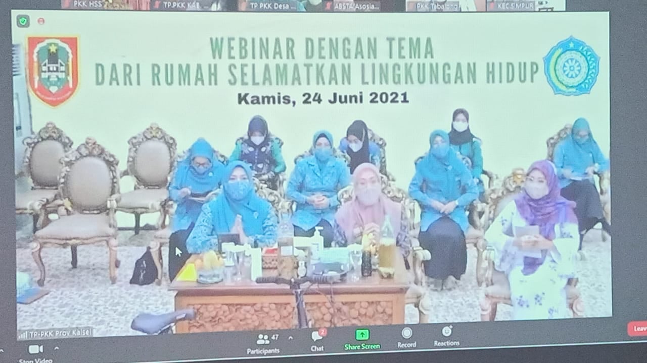 Tim Penggerak Pemberdayaan Kesejahteraan Keluarga (TP. PKK) Kabupaten Hulu Sungai Selatan (HSS) Mengikuti Webinar secara virtual, yang dilaksanakan oleh TP. PKK Provinsi Kalimantan Selatan (Kalsel) yang bekerjasama dengan Dinas Lingkungan Hidup Prov. Kalsel di Aula lantai II Sekretariat TP PKK Kab HSS, Kamis (24/06/2021).