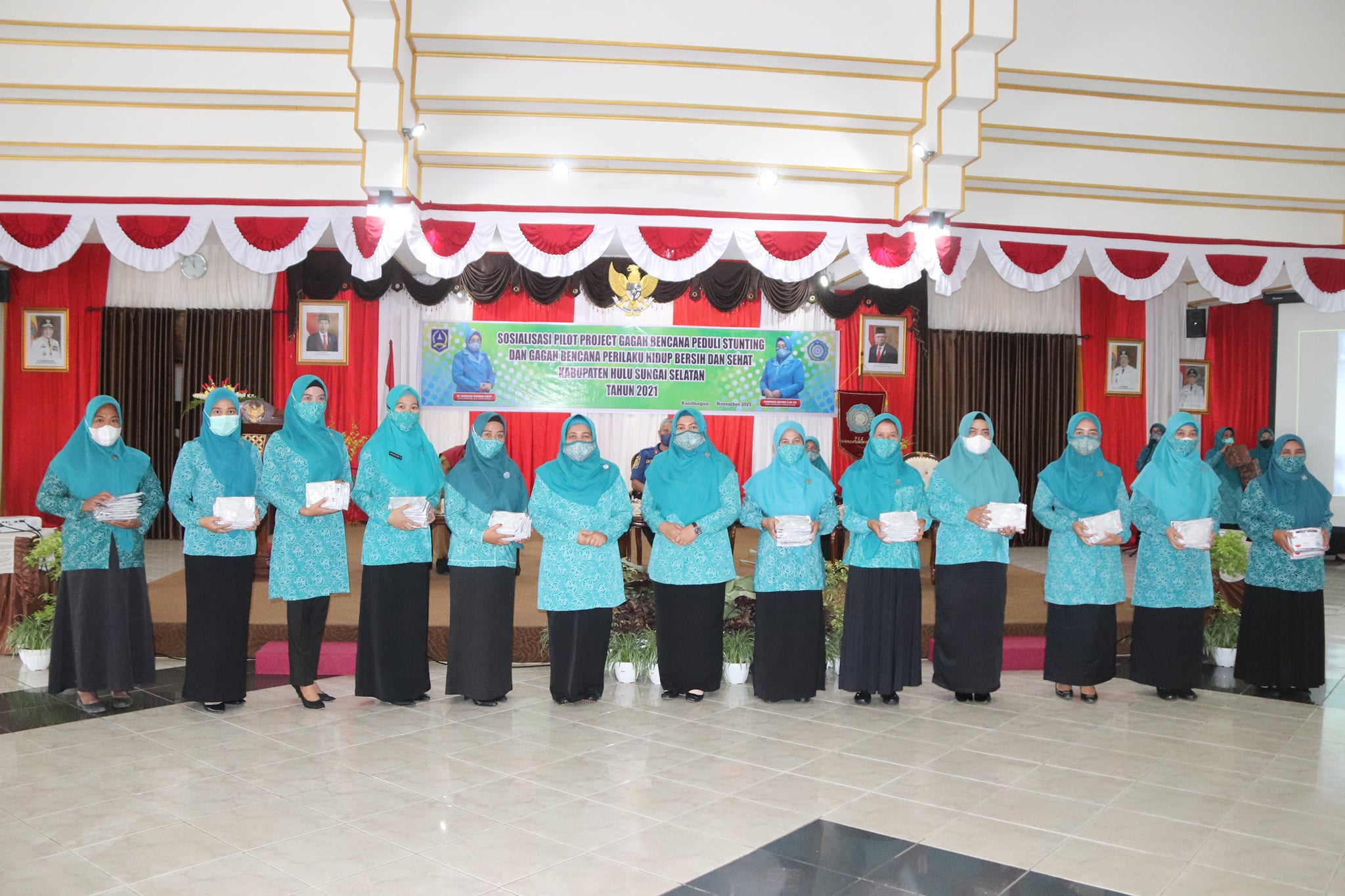 Dalam sosialisasi ini juga dirangkai dengan penyerahan Tas Keluarga Sehat Tanggap dan Tangguh Bencana dan masker yang diberikan oleh Ketua TP. PKK Kab. HSS Hj. Isnaniah Achmad Fikry didampingi Wakil Ketua I TP.PKK Kab. HSS Srie Astuti Syamsuri Arsyad.