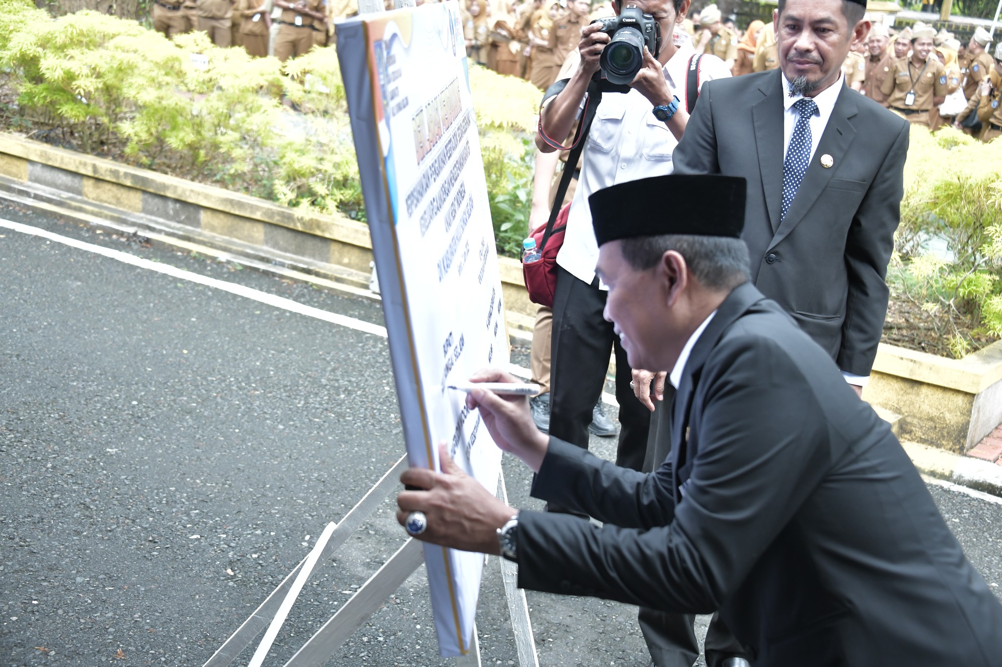 Deklarasi ini ditandatangani langsung oleh Bupati HSS H. Syafrudin Noor di halaman Kantor Sekretariat Daerah Kabupaten HSS. Penandatanganan turut diikuti oleh Kepala Dinas Pendidikan dan Kebudayaan Kab. HSS H. Akhmad Supian, S.Pd, serta perwakilan dari berbagai unsur pendidikan, seperti IGTKI, HIMPAUDI, Forum Kesetaraan/PKBM, K3S SD, MKKS SMP, MKKS SMA, dan MKKS SMK.
