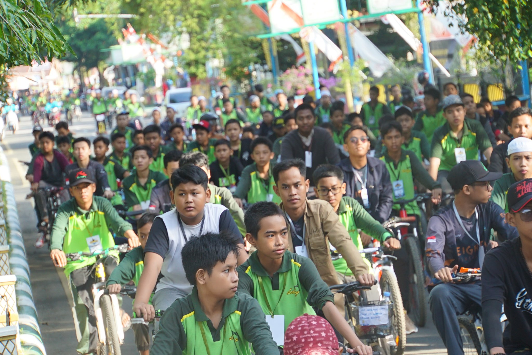 Wakil Bupati HSS Syamsuri Arsyad S.AP MA Gowes bersama Ribuan Santri dan Santriwati Ponpes Dalam Pagar Kandangan, Rabu (02/08).