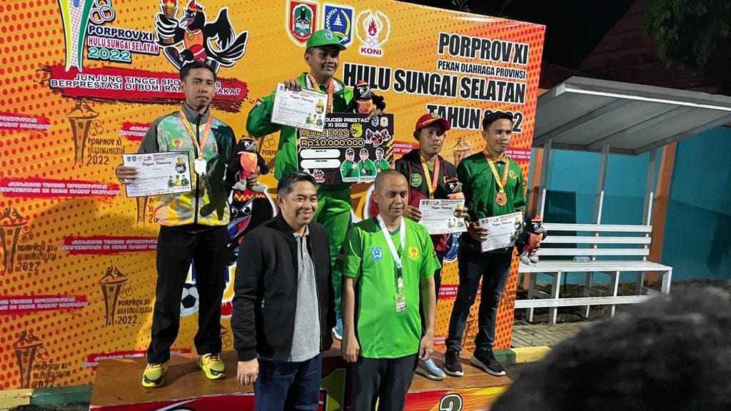 Bertempat di Gos Aluh Idut, pada malam hari ini Wakil Bupati Hulu Sungai Selatan (HSS) Syamsuri Arsyad, S. AP, MA melanjutkan Upacara Penghormatan Pemenang. Setelah penyerahan medali Cabang olahraga (Cabor) Basket, kali ini penyerahan medali dilakukan pada cabor Pentanque. Minggu, (06/11/2022).
