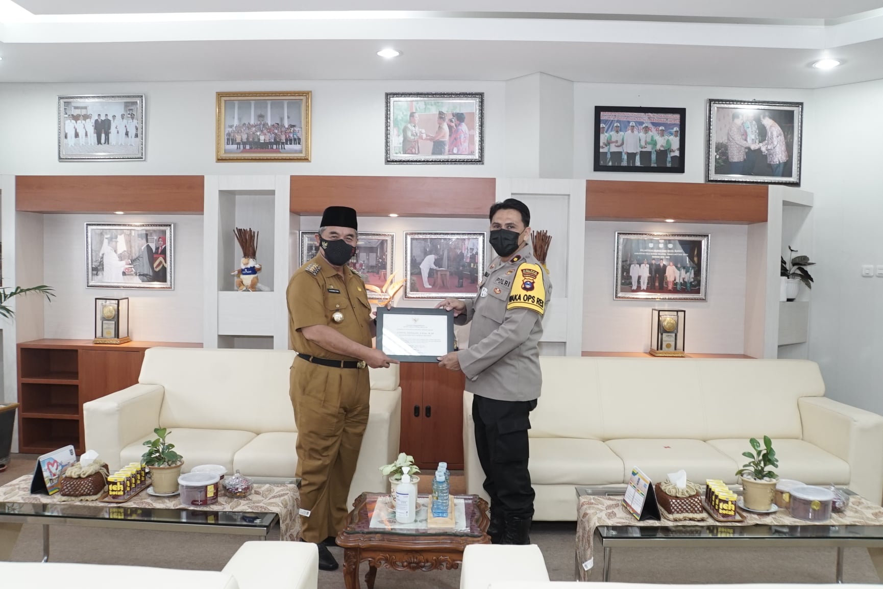 Pada kesempatan ini, diserahkan piagam penghargaan dari Bupati HSS kepada Wakapolres HSS Kompol Reinaldo, S.Kom, M.AP atas kerjasama dan pengabdian serta telah membantu menciptakan suasana keamanan yang tertib dan kondusif di Kabupaten HSS.