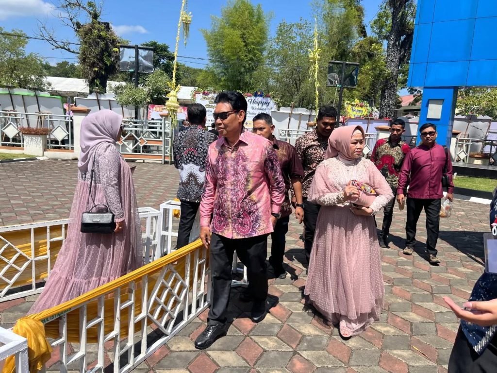 Pemerintah Kabupaten Hulu Sungai Selatan (HSS) menghadiri undangan resepsi pernikahan putri Bupati Hulu Sungai Tengah (HST) yang berlangsung khidmat dan meriah pada Sabtu, 18 April 2026, bertempat di Pendopo Kabupaten Hulu Sungai Tengah, Barabai.