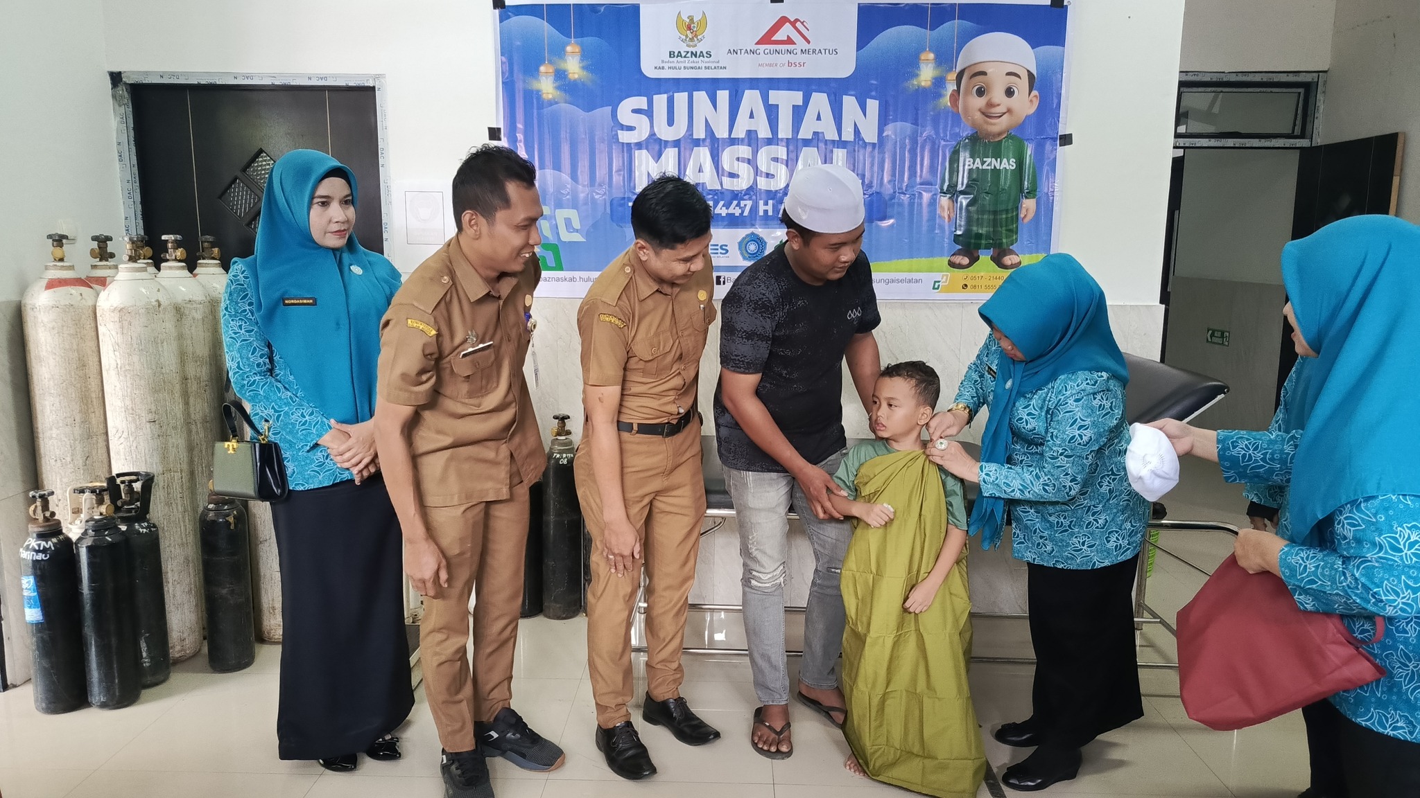 Wakil Ketua Tim Penggerak Pemberdayaan dan Kesejahteraan Keluarga (TP PKK) Kabupaten Hulu Sungai Selatan (HSS), Hj. Misnawati Suriani, bersama jajaran pengurus TP PKK Kabupaten HSS, melakukan peninjauan langsung terhadap pelaksanaan kegiatan Sunatan Massal yang diselenggarakan oleh TP PKK Kabupaten HSS bekerja sama dengan Dinas Kesehatan Kabupaten HSS, Badan Amil Zakat Nasional (BAZNAS) Kabupaten HSS, PT Antang Gunung Meratus, dan KPP Mining, pada Senin, 30 Juni 2025.