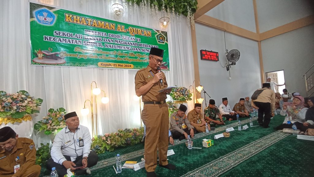 Dalam sambutan yang dibacakan Sekda, Pj. Bupati menyampaikan apresiasi dan ucapan selamatnya untuk para siswa dan siswi yang ikut khataman Al-Qur’an hari ini.